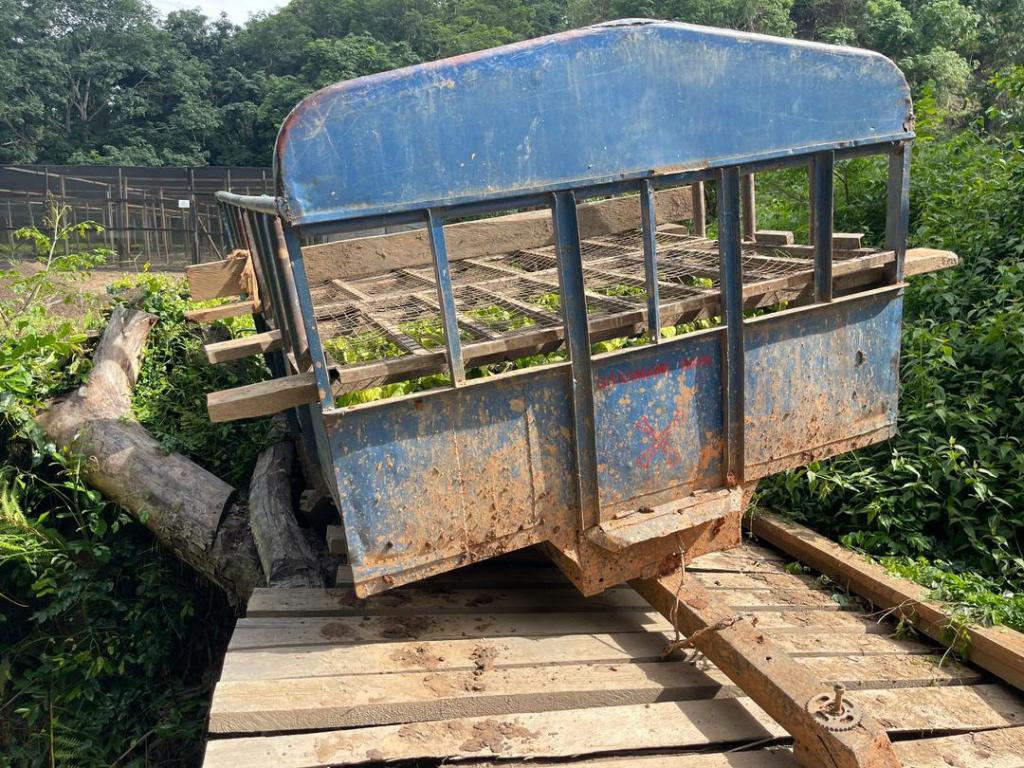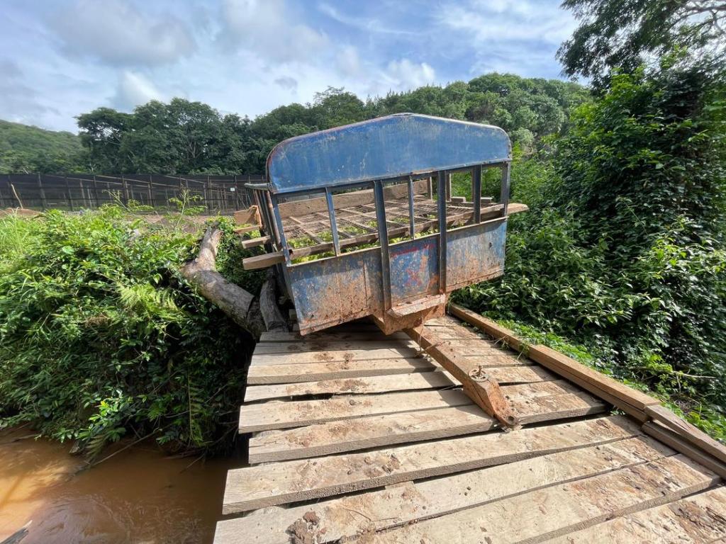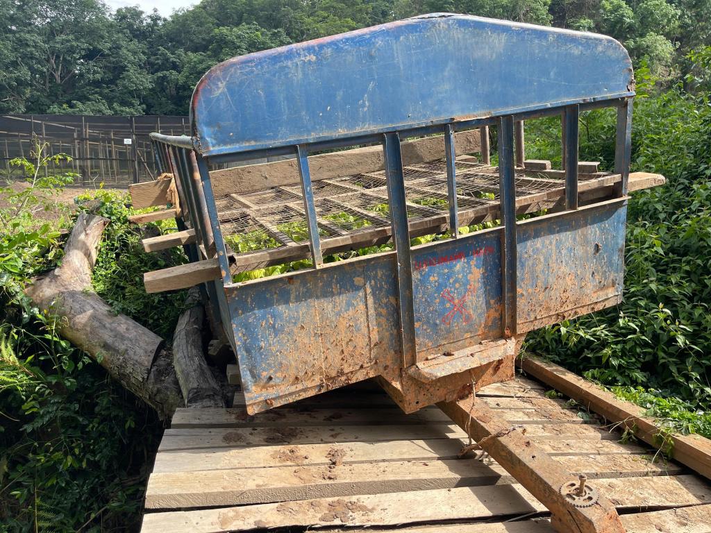 Grundsätzlich freuen wir uns alle über den Regen, aber die Infrastruktur ist noch nicht soweit. Vor allem die kleine Brücke auf dem Weg von der Setzlingsstation zum Wald sollte noch erneuert werden. Und das wäre auch gut gewesen, wenn das geklappt hätte….