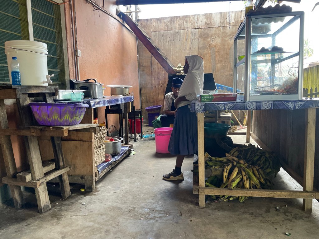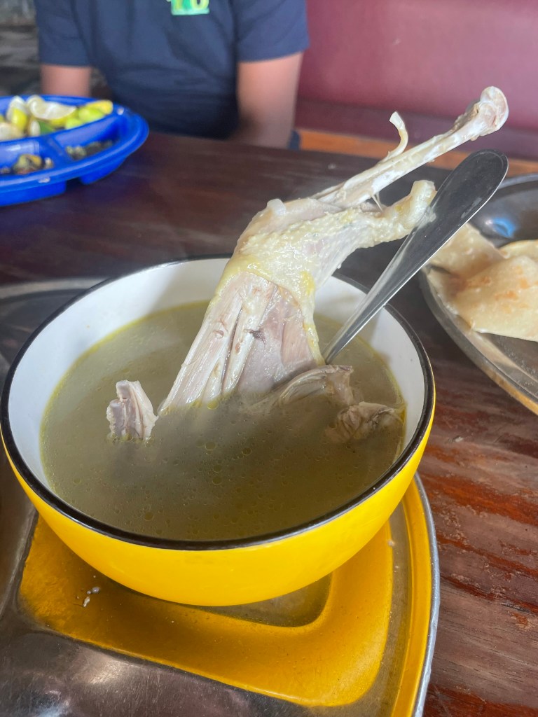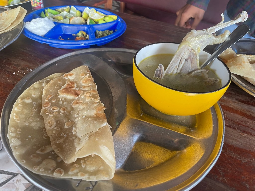 Zwischendurch eine Frühstückspause. Ganz typisch mit Pfannkuchen und Hühnersuppe.