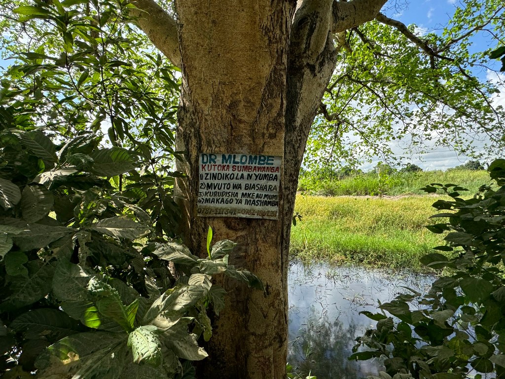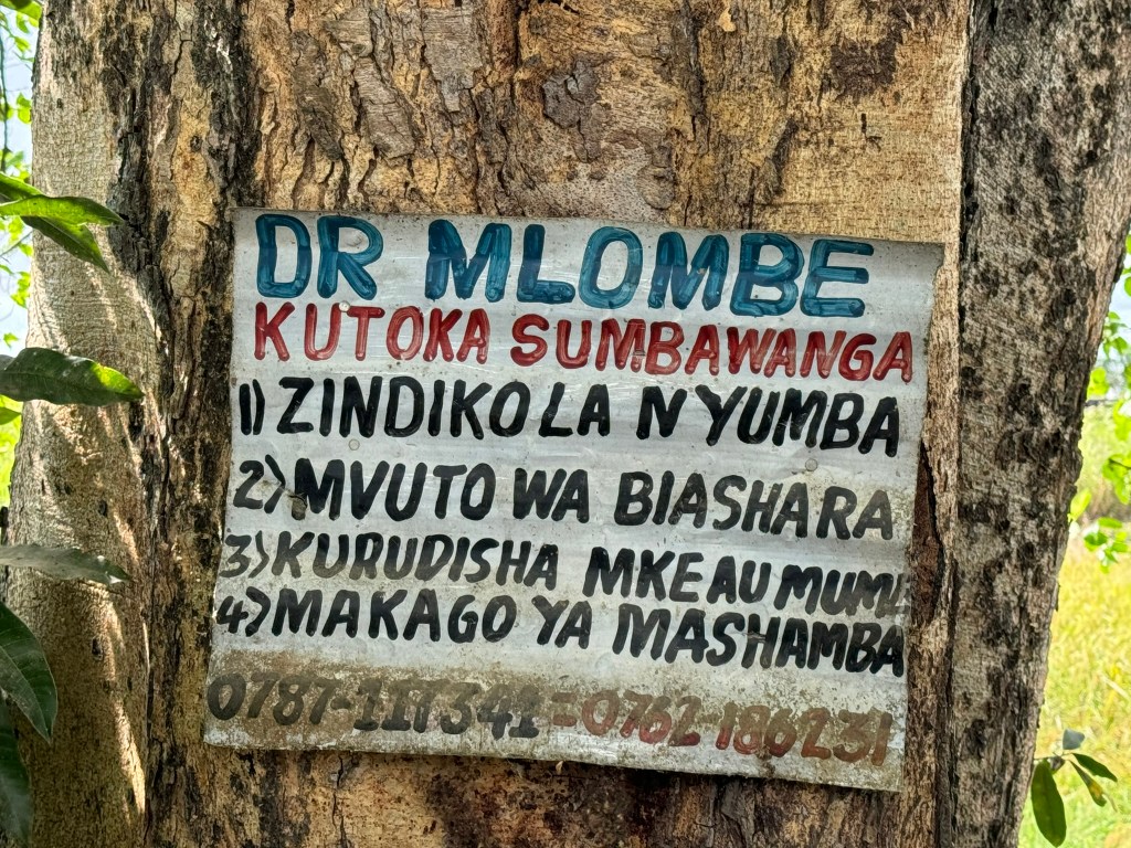 Oder der Aushang von Dr. Mlombe am Strassenrand