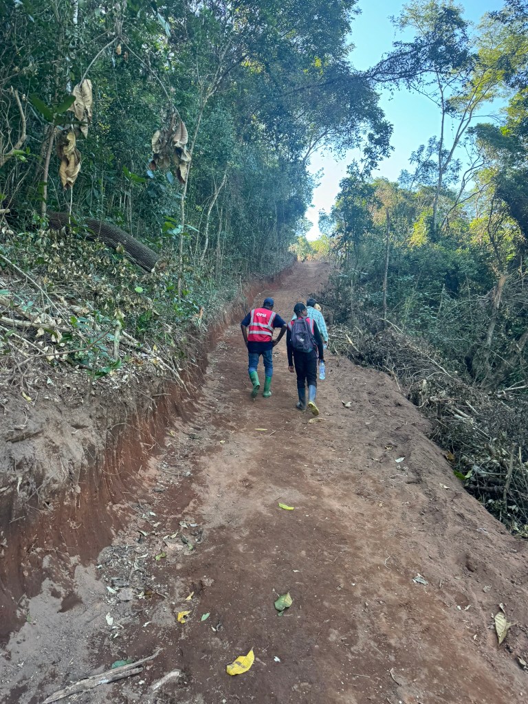 Schon jetzt ist mehr als deutlich, dass zuerst Strassen und Wege gebaut werden müssen. Wenn die Farm nicht komplett erschlossen ist, wird es unmöglich sein, eine vernünftige Bewirtschaftung zu garantieren. Nach einer Stunde Fussmarsch erreichen wir schliesslich das Haupt-Camp.